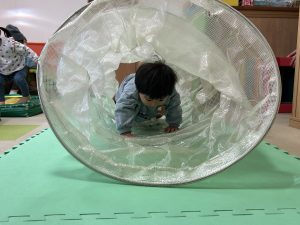 1歳~1歳半のお子さんが、幼児体育指導1級 板倉先生(保育教諭)が設定した